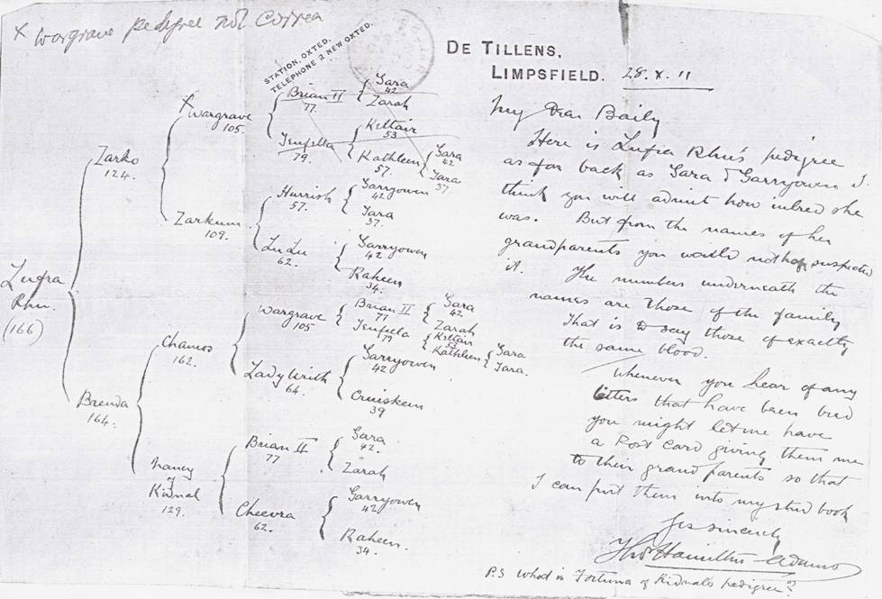 Pedigree I W litter - Dam born 1938. Sire born 1929