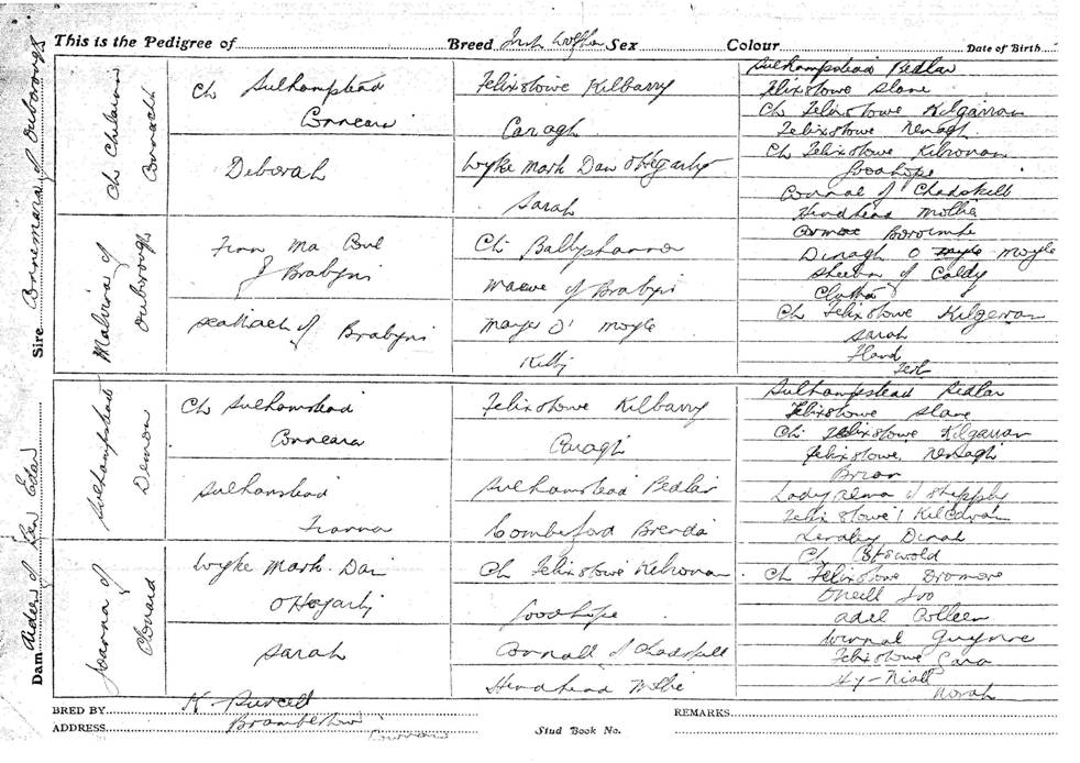 Pedigree TYNAGH born 20.6.1899