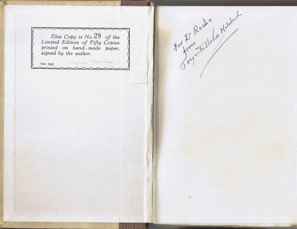 Limited Edition No 28 signed to Dr Roche by Lady Joyce Talbot de Malahide