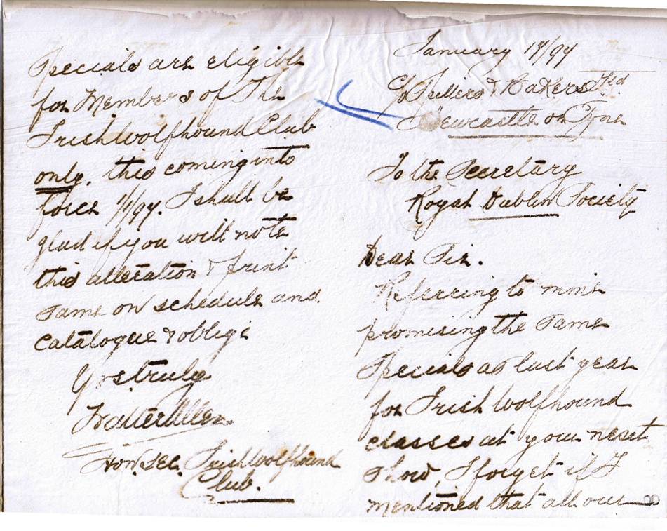 Letter to RDS, Dublin January, 1987